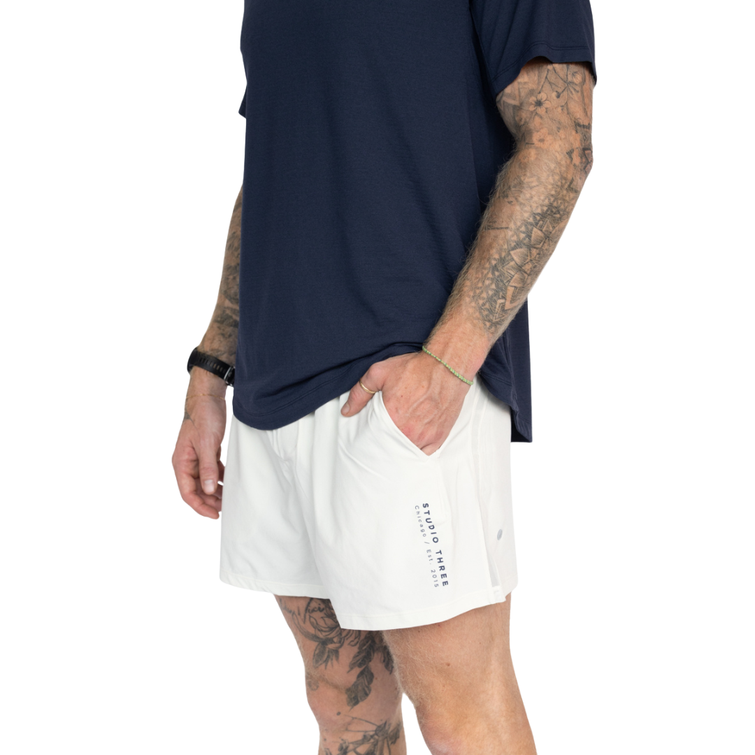 lululemon Pace Breaker Short with a 5" inseam, featuring a built-in liner for lightweight support and made from quick-drying, four-way stretch fabric for ultimate comfort and mobility. Finished with our Studio Three Chicago Est. 2015 graphic celebrating where it all began.